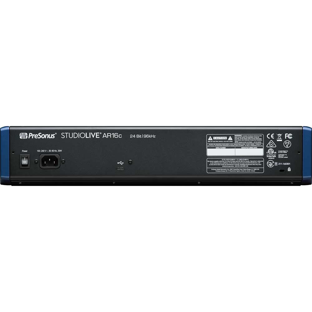 Don’t let the classic analog mixer design fool you – the StudioLive AR16c was built to record. Featuring a pristine analog front end with 12 high-gain XMAX mic preamps and an 18×4, 24-bit, 96 kHz, USB-C™-compatible USB 2.0 audio interface, the StudioLive AR16c’s hybrid design makes it simple to mix and record. Add in a musical 3-band analog EQ, mic/line boost for low-level sources including vintage synths, all-new digital effects with rich reverbs and lush delays, Bluetooth® connectivity, and a stereo SD recorder… and you have a mixing and recording powerhouse that fulfills the needs of both modern musicians and content creators.