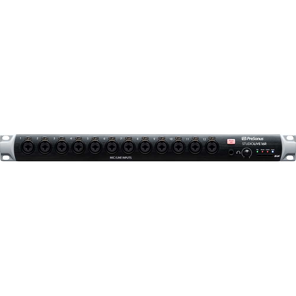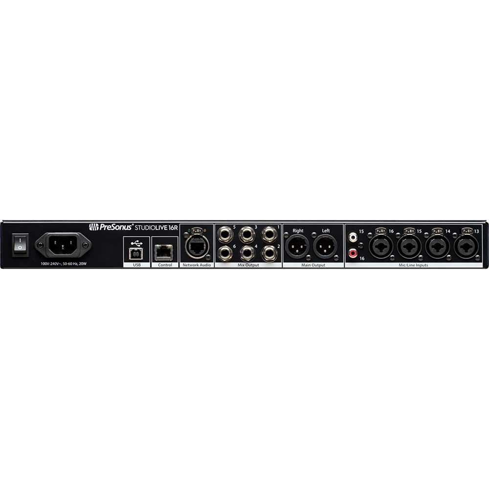The StudioLive 16R is a versatile 18-channel digital mixer in one rackspace. Use it standalone with Universal Control, pair with StudioLive Series III consoles as a stage box or monitor mixer, or connect with EarMix 16M personal mixers. It features a bidirectional 36-channel (18×18) USB audio interface with vintage-modeled dynamics and EQ plug-ins on every input and bus.
